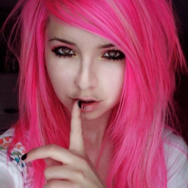 Long Emo hairstyles for girls are ideal for stylish updos that exude individuality. Add a strong, eye-catching hair color like this coral pink overtone and you’ve got the recipe for success.