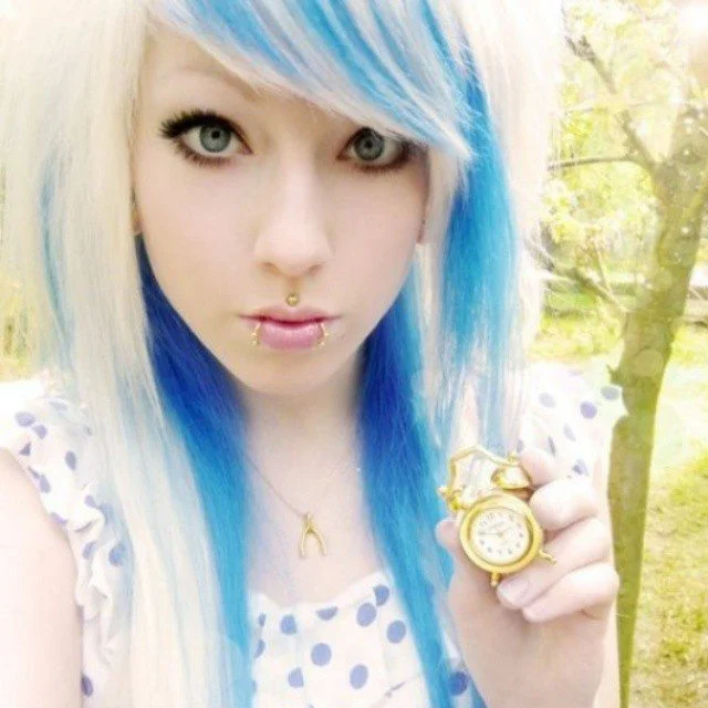 8. Blue, Side-swept Medium Length Emo Haircut for Girls