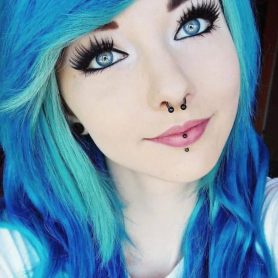 This is one of the most stunning wavy emo hairstyles we have spotted until now. The electric baby blue hair color is cute and soft, yet eye-catching and a whole lot of fun. Applied to long, wavy hair, it becomes even more vibrant.